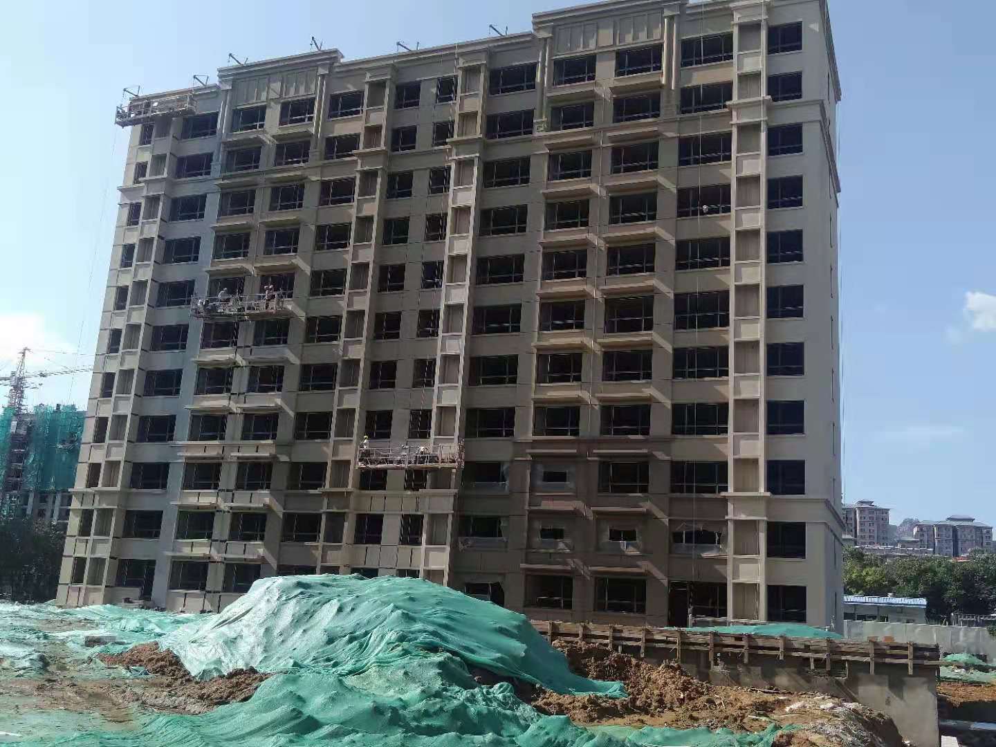 此次東山華府三期工程約七萬(wàn)平方米選用啄木鳥(niǎo)質(zhì)感漆,選用天然的礦物砂粒,經(jīng)先進(jìn)的配方工藝精制而成,使漆膜具有良好的耐候性和保光保色性,讓漆膜質(zhì)感涂料能有效保光保色,防止建筑在施工完畢后出現(xiàn)涂層剝落、雨水侵蝕、墻面崩裂等問(wèn)題,賦予了建筑高雅華麗的外觀形象,同時(shí)兼顧實(shí)用性和耐用性。